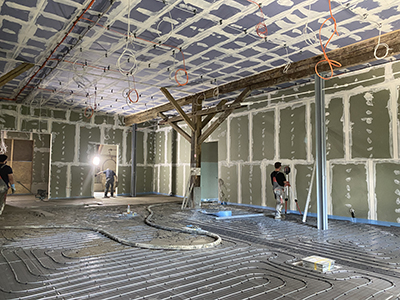 15.07.2021 Fußbodenheizung und Estricharbeiten im Veranstaltungsraum des Kühschiffs. |
