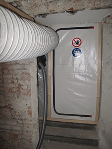 20.02.2018 Bei der maschinellen Enfernung von alten bleihaltigen Anstrichen auf den gusseisernen Säulen im Brau- und Malzhaus sind besondere Schutzmaßnahmen notwendig, damit die belasteten Schleifstäube nicht in die Umwelt gelangen. |