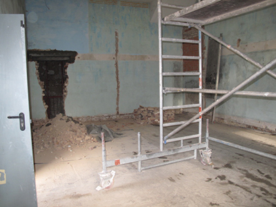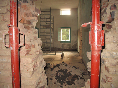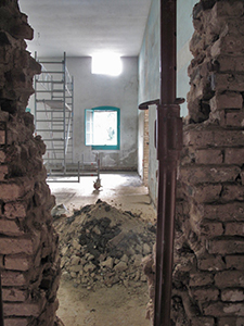 Zwischen Südflügel und Turm: Neue Wanddurchbrüche werden geschaffen, die in das spätere Treppenhaus führen. |