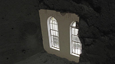 Rechts im Bild: Die neu eingesetzten Fenster des Turms. |