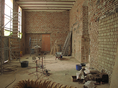 02.02.2020 Die "nackigen", vom Wandputz befreiten Ausstellungsräume im Brauhaus. |