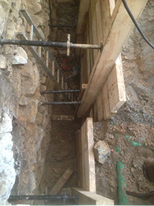 Abdichtungsarbeiten im Graben an der Nordseite des Malzhauses.