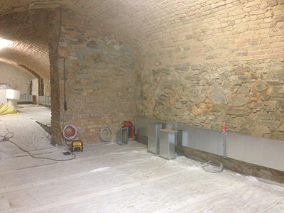 Belüftung zur Trocknung des Mauerwerks im Gewölbekeller des "Vinotto".