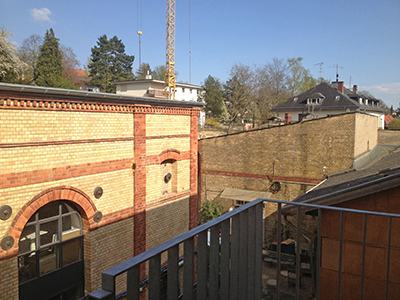 01.04.2020 Auf der neuen Fluchtreppe auf der Nordseite des Brauhauses. |
