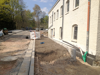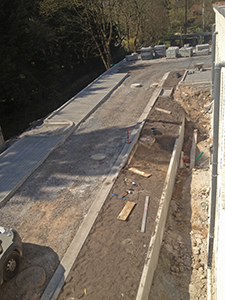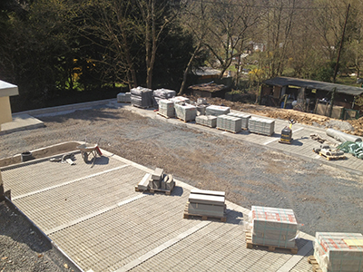 Die Stellflächen des Parkplatzes werden mit Betonsteinen gepflastert |