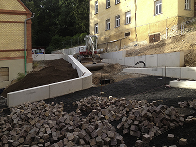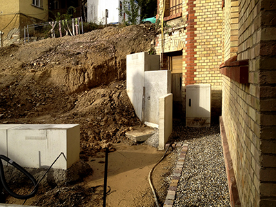 21.08.2020 Erdarbeiten und Pflastersteine im Vorbereich des Backsteinhauses. |