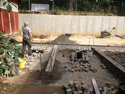 03.09.2020 Arbeiten an den Außenanlagen vor dem Pferdestall und dem Mühlengebäude. |