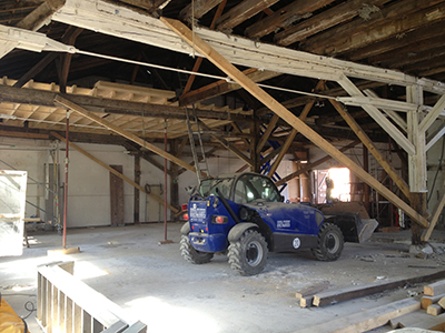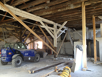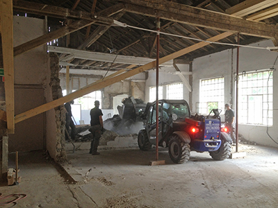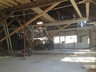 07.09.2020 Abbruch der Zwischenwände im Kühlschiff und neue Balken für die Zwischendecke. |