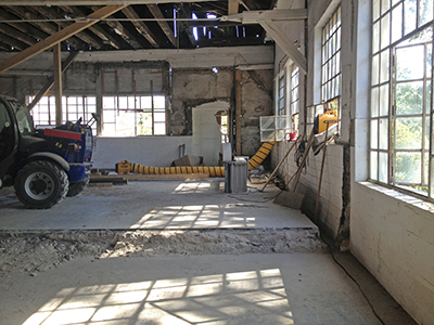 10.09.2020 Bildeindrücke aus dem weitgehend entkernten Kühlschiff. Hier werden sich später ein großer Veranstaltungsraum des Künstlervereins, die Toilettenanlagen für den Veranstaltungsbereich, ein großes Atelier und kleinere Lagerräume befinden. |