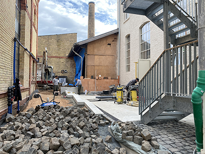 21.10.2020 Pflasterarbeiten rund um das Obergeschoss des Sudhauses. |
