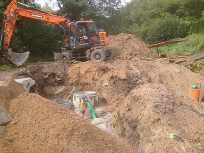 20.09.2017 Südseite der Walkmühle: Kanal- und Entwässerungsarbeiten. |