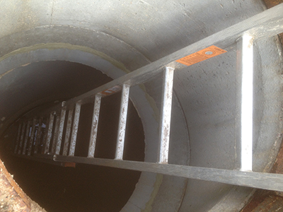 Blick in einen der Zisternenschächte der Löschwasserbevorratung. | |||