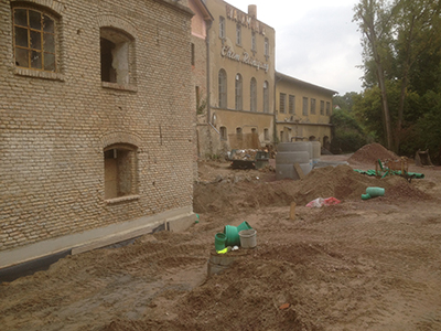 22.09.2017 Arbeiten an den Entwässerungsleitungen rund um das Getreidelager. |