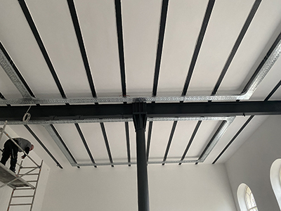 16.11.2020 Arbeiten an der Decke des großen Ausstellungssaals im Brauhaus. |