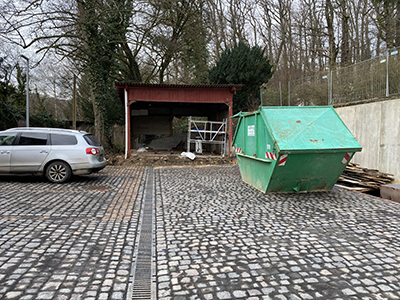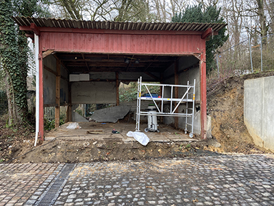 20.01.2021 Rückbau der roten Garage vor dem Pferdestall. |