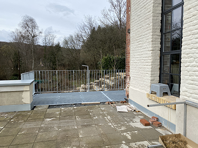 16.03.2021 Der Bodenrost der Brücke zwischen Getreidelagerterrasse und Pferdestallgarten ist montiert. |