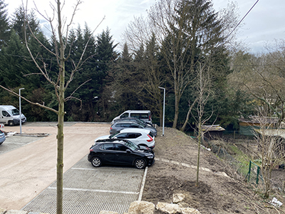Hang oberhalb und Pflanzstreifen seitlich des Parkplatzes. |