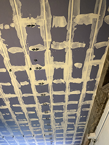 03.05.2021 Montierte und gespachtelte Brandschutzdecke im Veranstaltungsraum des Kühlschiffs. |