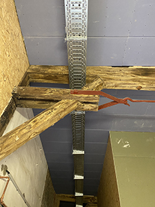 Vorraum und Flur zu den WC-Anlagen mit ersten Kabelpritschen. |