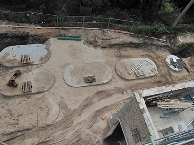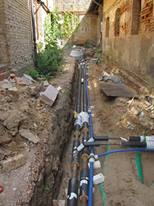 Arbeiten an den Versorgungsgräben rund um Mühlenhaus, Mühlenhof und Malzhaus.