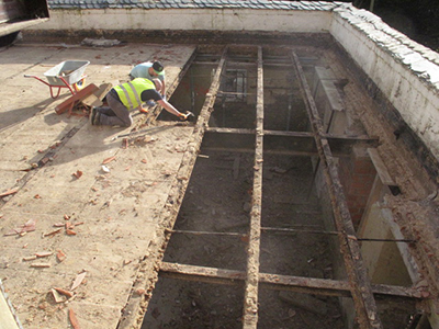 14.03.2017 Terrasse Getreidelager: Öffnung der Terrassendecke. |
