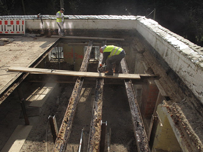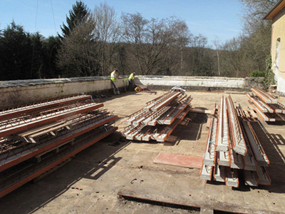 15.03.2017 Terrasse Getreidelager: Demontage der alten Deckenträger |