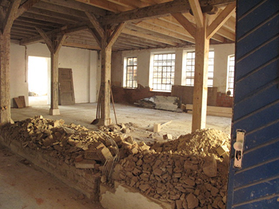 | Die Walkmühle im Umbruch: Mit unserem fotografischen Tagebuch erleben Sie den Fortgang der Sanierungsarbeiten ganz nah! (Um ganz am Anfang der Sanierungsarbeiten im Jahr 2013 zu beginnen, klicken Sie einfach HIER) |