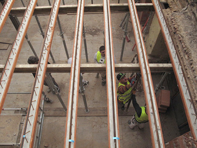 17.03.2017 Terrasse Getreidelager: Montage der neuen Deckenträger. |