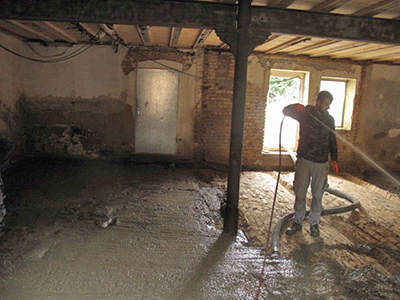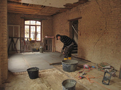 17.02.2017 Anlegen des Estrichs im EG des Mühlengebäudes. |