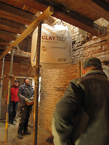 Ersetztes Mauerwerk in unserem hinteren Ausstellungsraum. Hier war die Wand vormals völlig durchfeuchtet. |