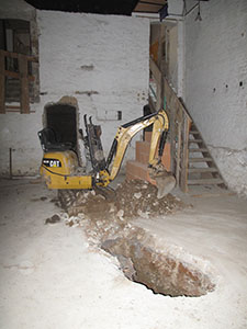 Sondierungsgrabung im Fußboden des ehemaligen Studios von Bernhard Schmerl. |