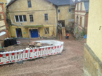 Schotterverdichtung im Mühlenhof. |