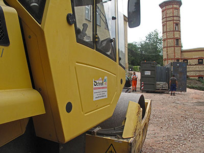 Herumlaufen auf der Baustelle nur noch in Sicherheitswesten auch für die OrganisatorInnen des Künstlervereins ;-) |