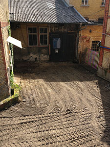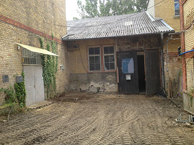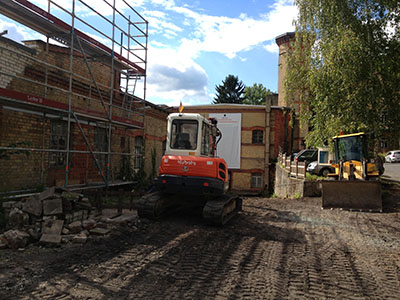 10.08.2016 Nun geht es im Eingangsbereich des Künstlerverein richtig zur Sache: Ein Bagger entfernt die Beläge ... |
