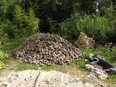 Die schönen und wertvollen Pflastersteine werden isoliert und zur späteren Wiederverwendung gelagert. |