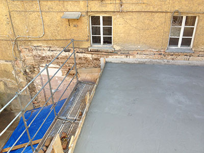 12.08.2016 Die fertig gegossene Terrassendecke über dem Mühlenhof. |