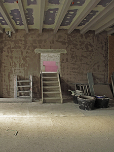 09.02.2019 Im Kellergeschoss des Pferdestalls werden schöne und intakte Solnhofener Kalksteinplatten vom alten Fußboden geborgen. |