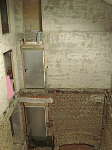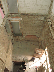 12.02.2019 Mittlerweile sind alle Zwischengeschossdecken aus dem späteren zentralen Treppenhaus entfernt. |