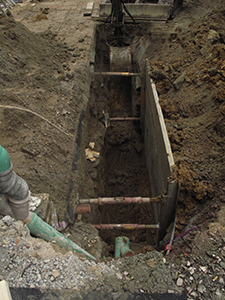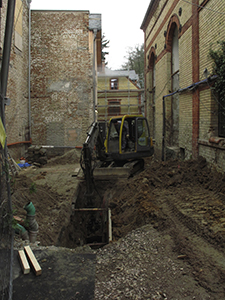 Weiteres Abgraben an den Grundmauern des Brauhauses,