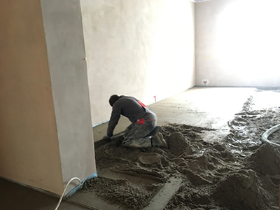 Im künftigen Atelier im Malzhaus verschwindet derweil die Fußbodenheizung unter frischem Estrich.