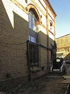 Die großen, über zwei Geschosse laufenden Bogenfenster an der Südseite des Sudhauses sind eingesetzt.