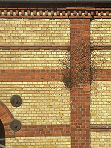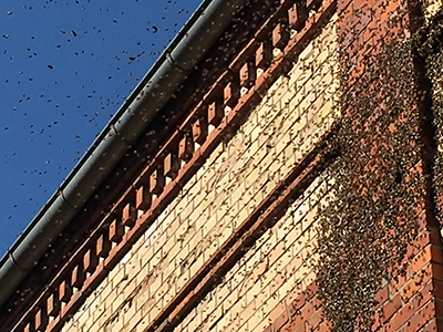Trotz der Baustellenaufregung: "Unsere" Bienen sind wieder da! Sie wohnen im Hohlraum zwischen dem doppelwandigen Mauerwerk des Sudhauses. An ihren Honig wird niemals ein Imker herankommen!