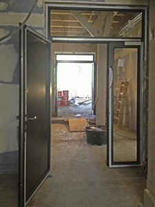 05.06.2019 Neue Türen im Erdgeschoss des Malzhauses zwischen Atelier, Flur des Veranstaltungsbereichs und dem Treppenhaus. |
