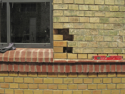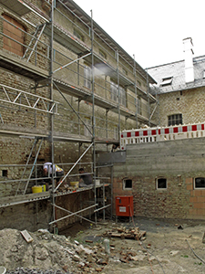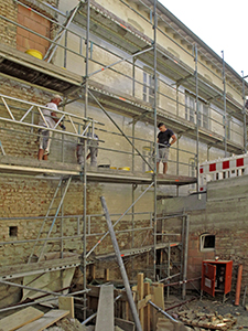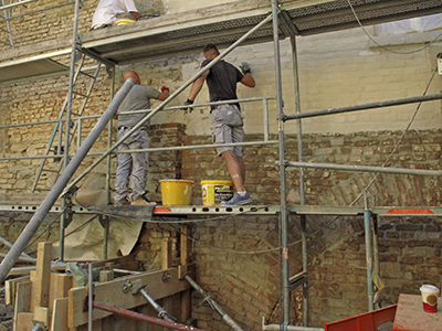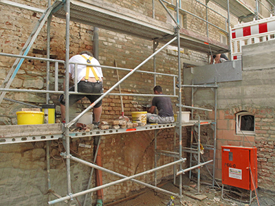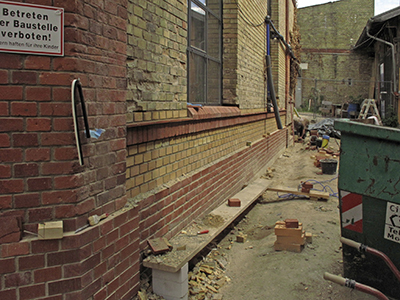 Selektive Erneuerung der Ziegel an der Sudhausfassade. |